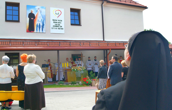 Modlono się w różnych językach: po polsku, po litewsku, były krótkie wątki modlitwy po angielsku, francusku, niemiecku. Eucharystii towarzyszyły przepiękne śpiewy Chóru Mariańskiego z Krakowa oraz chóru parafialnego z Mejszagoły. Ogólna atmosfera była wspaniała: wielkie skupienie, rozmodlenie – wszystko to niczym jeden wielki hymn dziękczynienia „Ciebie, Boże, wysławiamy” unosił się ku niebu. Po Mszy św. odczytano list papieża Benedykta XVI, w którym wyrażał słowa podzięki siostrom, robotnikom, którzy się przy budowie trudzili, wolontariuszom i z całego serca udzielił swego papieskiego błogosławieństwa pracownikom hospicjum, chorym i wszystkim uczestnikom tej uroczystości.