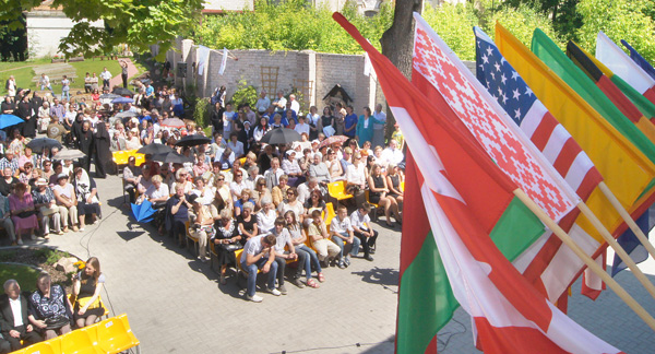 Na podwórzu klasztornym, gdzie miała się odbyć cała uroczystość, wisiały flagi dziewięciu państw, państw, które w różny sposób wspierały finansowo wileńskie hospicjum. Tu też widniało duże logo: serce, a w nim kontury domu. Biegali wolontariusze, by tu i ówdzie coś podprawić, sprawdzić mikrofony itp.