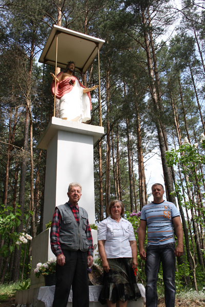 A oto przyszli Bartoszewiczowie, ojciec Bronisław z synem Rajmundem, staraniem których odnowiono figurkę, a teraz już właściwie małą kapliczkę.