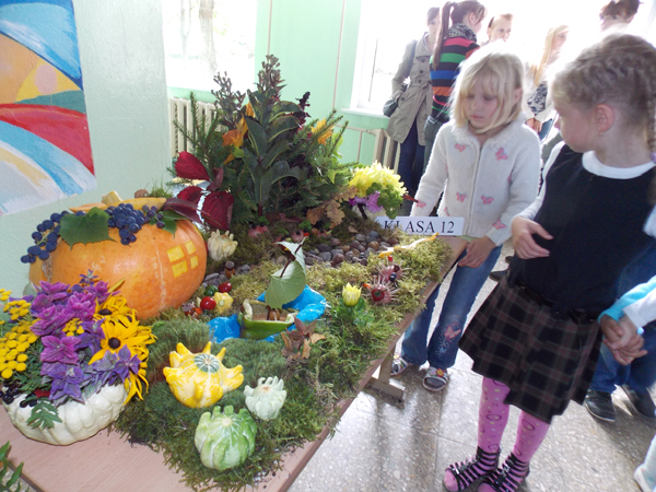 W tym roku mogliśmy oglądać różnorodne kompozycje, a każda była ciekawa. Przy każdym stoisku można było spędzić sporo czasu i cieszyć się, że nasi uczniowie są pomysłowi, umieją fantazjować i ze zwykłego jabłka wyczarować przepiękne świece, z dyni – żółwia albo kompozycję z kwiatami i pływającymi świecami.