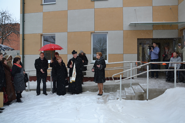 Podopieczni centrum serdecznie witali przybyłych na uroczystość gości: posła do Parlamentu Europejskiego Waldemara Tomaszewskiego, posłów na Sejm Republiki Litewskiej Ritę Tamašunienė, Leonarda Talmonta oraz Michała Mackiewicza, mer Samorządu Rejonu Wileńskiego Marię Rekść. Nową dobudówkę poświęcił proboszcz parafii św. Archanioła Michała w Niemenczynie Eduardas Kirstukas.