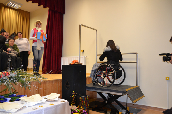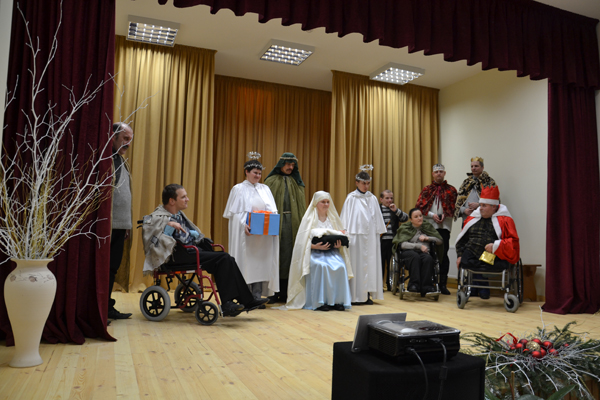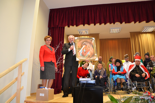 Po uroczystym przecięciu wstęgi zebranych przywitała dyrektor ośrodka Jadwiga Ingielewicz. Następnie podopieczni centrum zaprosili wszystkich do obejrzenia przedstawienia Bożonarodzeniowego „Niebieski prezent”, a także opracowanej przez nich prezentacji opowiadającej o przebiegu budowy dobudówki.