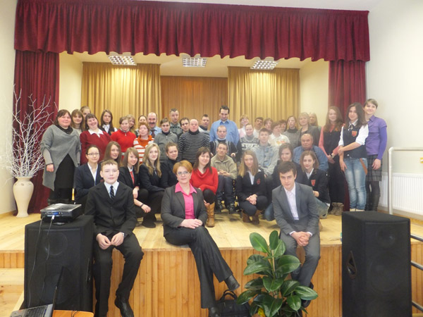 Pierwsze spotkanie miało miejsce 5 marca, gdy do Centrum w Niemenczynie zawitali uczniowie klas 8 i 9 wraz z paniami Anną Ulewicz i Teresą Kozak. Uczniowie obejrzeli Centrum, zapoznali się jego działalnością, podziwiali wykonane przez niepełnosprawnych prace. Następnie uczniowie przy pomocy prezentacji zdjęć opowiedzieli o swoim gimnazjum, o patronie.