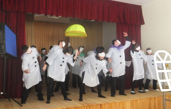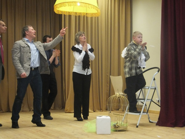 15 marca do Centrum w Niemenczynie ze wspomnianego gimnazjum zawitał teatr „Wędrówka” pod kierownictwem pani Bożeny Bieleninik, ze spektaklem „Skrzydełka”. Jest to teatr, w którym grają nie tylko uczniowie, ale też nauczyciele i rodzice. Aktorzy podjęli bardzo trudny temat. Bycie innym, idealizm, konsumpcjonizm. Dziecko, które rodzi się ze skrzydełkami nie chce być zmaterializowane jak rówieśnicy, konsumpcyjne i zazdrosne jak dorośli. Jest i chce być inne. Rówieśnicy go wyśmiewają, rodzina nie rozumie i nie akceptuje dziecka. Temat trudny i bardzo aktualny.