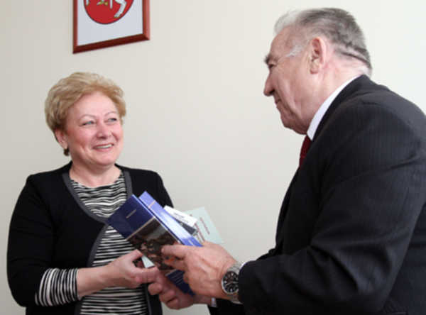 Zygfryd Gładkowski wręczył na ręce dyrektor szkoły medal okolicznościowy „Wiedza i Wiara”, książkę „Wileńskie korzenie”, jak też edycję o działalności Towarzystwa, które to już swoje 25-lecie zaliczyło.