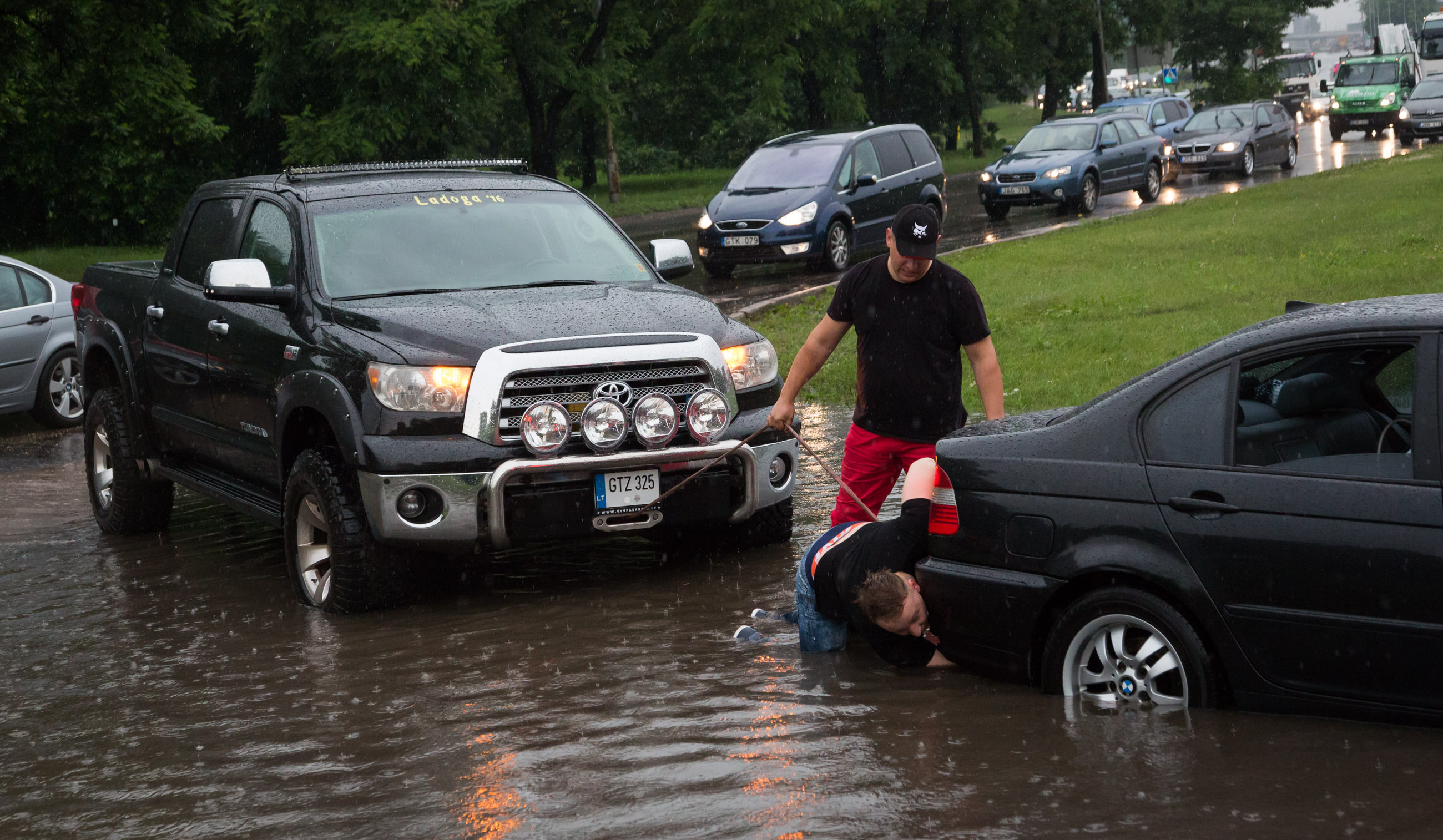 A dzieci i amatorzy kielicha mieli swój biznes. Wypychali uwięzione w wodzie auta i proponowali… „spłukane” tablice rejestracyjne: „Może chce pan kupić swój numerek?”