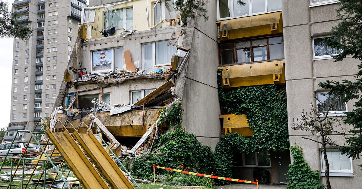 Groźny incydent w Wilnie — na chodnik spadły kawałki balkonu. Takie przypadki są coraz częstsze