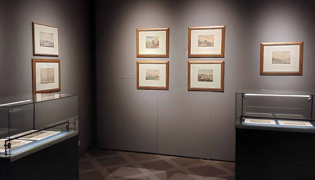 – Pomysł takiego układu to koncept Ignasa Račickasa, kuratora ze strony litewskiej – tłumaczy Urszula Kozakowska-Zaucha. – Ponieważ Orda tworzył też poezję, każda sekcja rozpoczyna się cytatem z jego wierszy. Na wystawie nie ma innych artefaktów, jej wartością są autentyczne rysunki, oczywiście uzupełnione tekstami i materiałami edukacyjnymi. Choćby wielką mapą, pod którą rozmawiamy, a która uzmysławia obszar działalności artysty. Rdzeniem całej wystawy są tereny Wielkiego Księstwa Litewskiego w jego historycznych granicach, ze szczególnym ukierunkowaniem na tereny, które aktualnie wchodzą w skład Litwy. Zespół kuratorski, zwłaszcza kurator ze strony litewskiej, który odpowiadał za wizję zasięgu geograficznego, chciał, by był jak najszerszy, by zaprezentować cały przekrój twórczości Ordy. Można więc też na wystawie znaleźć przykłady jego prac z Galicji czy Wołynia. Część obiektów wybieraliśmy pod kątem zaprezentowania, jak kształtował się warsztat artystyczny Napoleona Ordy, co na wystawie jest uwypuklone.