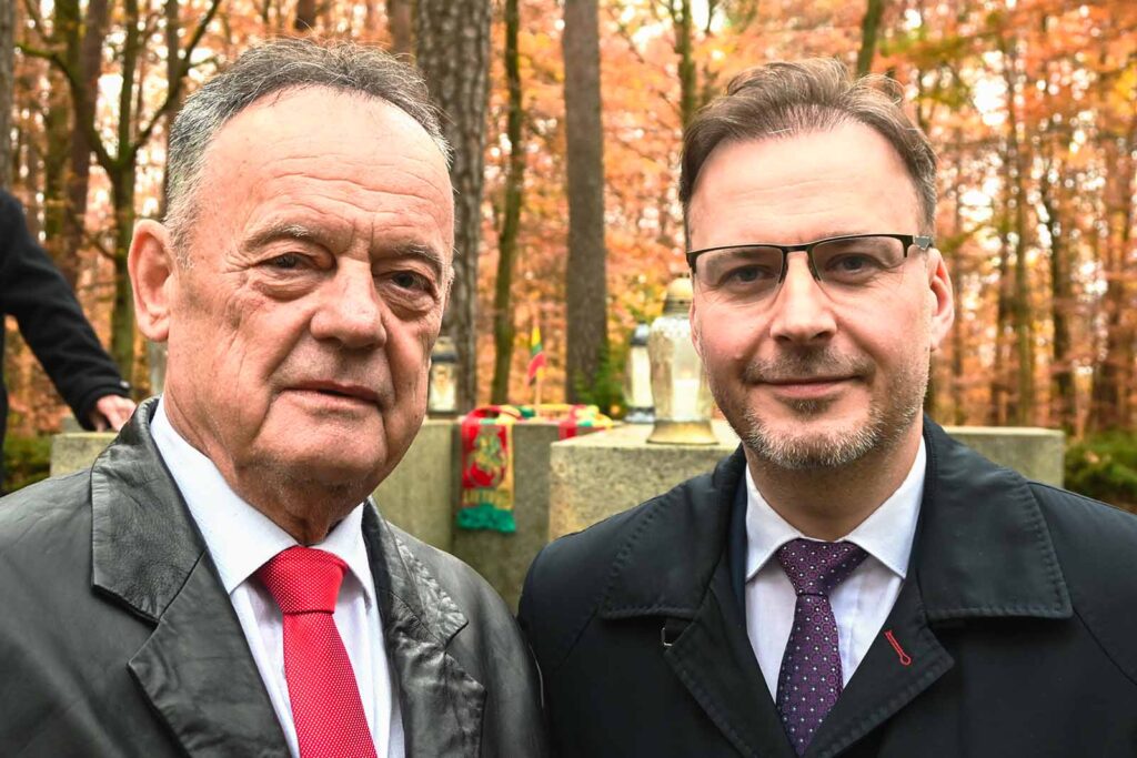 „Spotykamy się dzisiaj, aby uczcić pamięć pilotów litewskich, bo jesteśmy od wieków związani z Litwą — powiedział. Ludziom zebranym w tym gronie nie trzeba przypominać o wielowiekowych związkach polsko-litewskich. Natomiast w obszarze działalności Instytutu Pamięci Narodowej są również miejsca pamięci. Nie tylko miejsca pamięci związane z historią Polski, ale również z osobami czy wydarzeniami, które w jakiś sposób związane są lub były z obszarem naszego państwa, a które tu żyły czy mieszkały. Czy nawet w sposób tragiczny, tak jak ci dwaj bohaterzy litewscy, którzy zakończyli tu swoje życie. Są to miejsca, przez które możemy budować polskie relacje. Jesteśmy przecież, jak wspomnieli to wcześniej panowie konsul i marszałek, na pierwszym froncie budowania relacji polsko-litewskich (…). To dzięki panom konsulowi i burmistrzowi tak pięknie ta pamięć o nich jest tu pielęgnowana” — mówił Krzysztof Męciński.