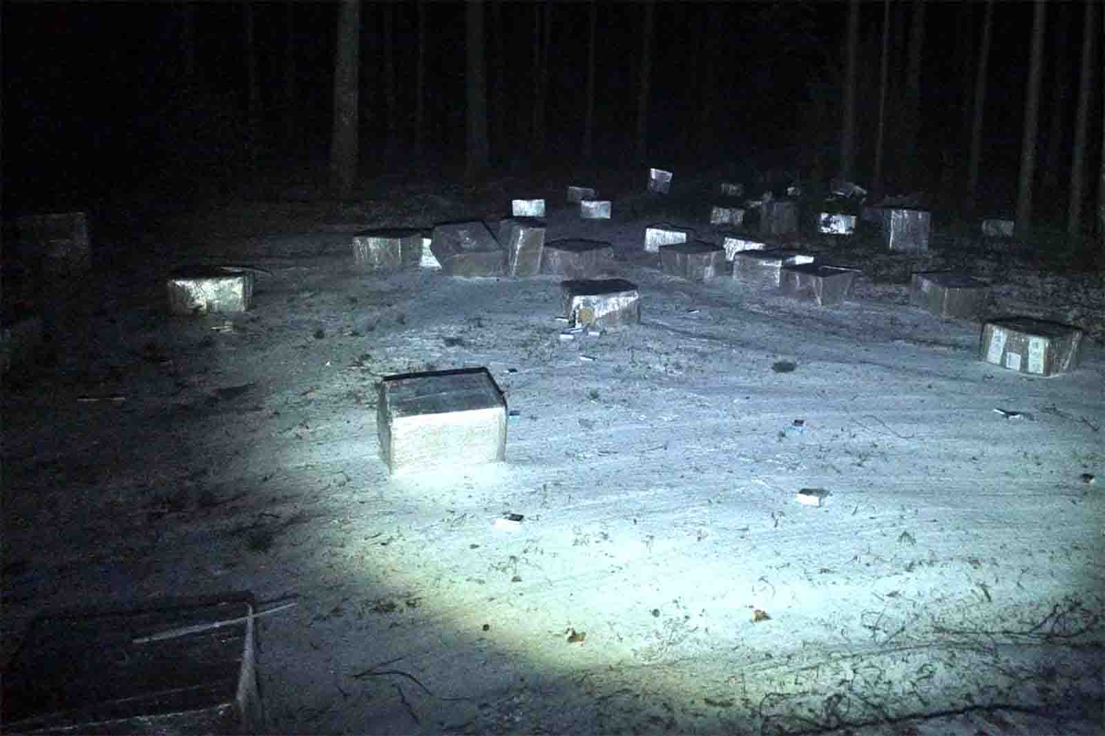 W środę 31 stycznia w nocy funkcjonariusze VSAT z oddziału w Kopciowie, pełniący służbę w okolicach wsi Kuodžiai (rejon łoździejski), w lesie, na skrzyżowaniu linii kwartalnych, zauważyli wiele białych czworokątnych paczek z haczykami przymocowanymi pośrodku.
