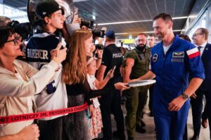 „To słowo bardzo stare, greckie, oznaczające porządek, ale i piękno. Związane jest z podróżami, w tym z podróżą kosmiczną, z polskim astronautą, którego jeszcze 20 lat temu nazwalibyśmy kosmonautą” — wyjaśnił prof. Łaziński.