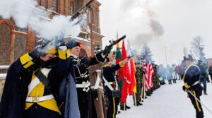 Gdy po mszy wyszliśmy z kościoła, to poczuliśmy, jakbyśmy weszli do cieplejszego pokoju z kominkiem. Tam, przed kościołem, była kontynuacja ceremonii. Głos zabrali rekonstruktorzy, sami strzelcy (wręczyli podziękowania najbardziej aktywnym członkom), goście specjalni. Konsul generalny Dariusz Wiśniewski zapytał dowódcę kompanii, czy będzie tłumaczył na litewski (większość uczestników to byli Litwini). Odpowiedź była krótka: „Mówić po polsku, wszyscy tu rozumieją!”. Więc konsul mówił po polsku. I wszyscy rozumieli.