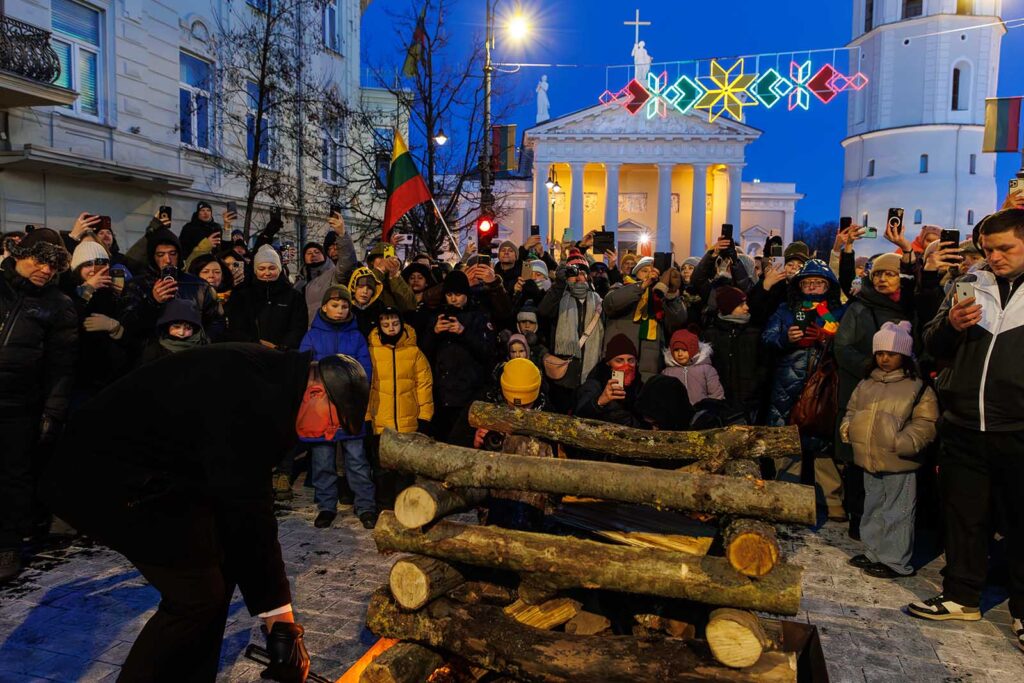 Program obchodów 108. rocznicy Odrodzenia Państwa Litewskiego był bogaty. Rano na Cmentarzu na Rossie przy grobie Jonasa Basanavičiusa uhonorowano sygnatariuszy Aktu Niepodległości 16 lutego 1918 r. Na Placu Katedralnym zaprezentowano interaktywny projekt teatru ulicznego „Sygnatariusze idą się sfotografować”.