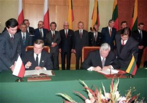 „Narody takie jak Polska i Litwa doświadczają tego od wieków. Nie sięgając daleko – przypomnę to, co powiedział marszałek Sejmu Karczewski przy okazji 25-lecia traktatu polsko-litewskiego. Wskazał wówczas, że polityka naszych wschodnich sąsiadów polegała na tym, żeby z jednej strony przekonać Litwinów, iż Polacy o niczym innym nie myślą, tylko o tym, żeby odebrać Litwie Wilno, a z drugiej – przekonać Polaków, że Litwinom nie zależy wyłącznie na lituanizowaniu polskich dzieci. Temu właśnie miał zapobiegać traktat polsko-litewski – i to są pewne wytyczne do działań, które mamy do dziś” — przypomniał Grzegorz Marek Poznański.